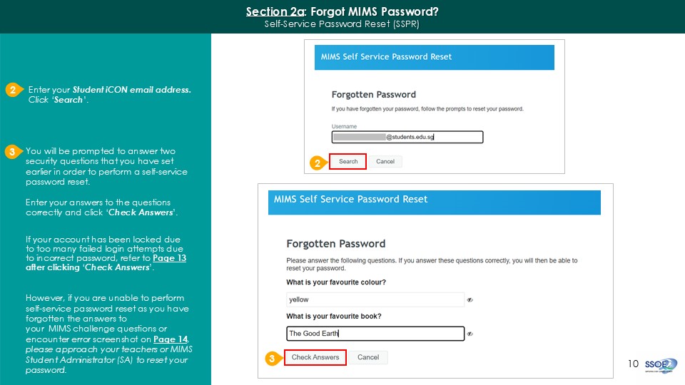 Note: Prior to using this ‘Forgot Password?’ feature, you should have already set up your MIMS Challenge Questions. If you have not done so, please approach your teachers for help.